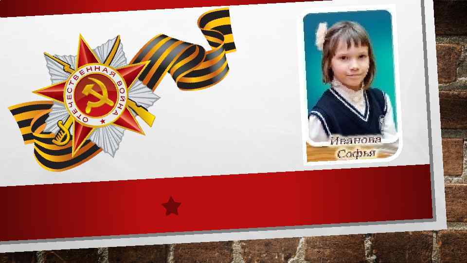 Это моя прабабушка, Пойдинец Мария Алексеевна. Ей больше 90 лет. Вот, что она нам рассказала: «До войны бабушка Маша жила в Стрельне со всей своей семьей: мамой, папой, бабушкой и сестрой. Когда началась Великая Отечественная Война, ее папа ушёл на фронт, а 21 сентября 1941 года фашисты заняли Стрельну. Посёлок был полностью в огне. Всю семью и других жителей сначала гнали в Сланцы. Им давали кушать жмых и мороженую картошку, отправляли в товарных вагонах в Германию. Эти вагоны охраняли полицаи с собаками. Людей привезли в концлагерь в г. Бойценбург на реке Эльбе. Там было много других людей разных национальностей. Лагерь был окружен колючей проволокой, по которой шёл электрический ток. Заключенные работали с утра и до ночи, а кушали «баланду из брюквы» . На работу гнали строем, били плётками. Болеть было нельзя, сразу увозили в крематорий. Их лагерь освободили 27 апреля 1945 года войска Белорусского фронта. Бабушка Маша до сих пор всё помнит. Мои мама и папа говорят, что Победа прадеда-это и наша Победа! Я знаю, что Победа это Мир. Это значит нет войны, и моя семья рядом со мной! Пойдинец Мария Алексеевна