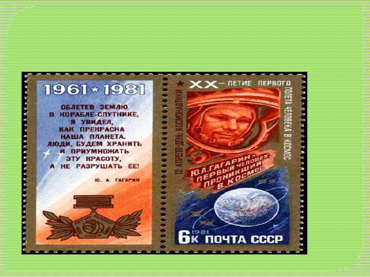 Википедия 12 апреля 1961 года с космодрома Байконур была запущена ракета- носитель Восток с кораблём «Восток-1» на борту. Корабльспутник с Юрием Гагариным на борту вышел в космос сделав оборот вокруг Земли, позывной Гагарина был «Кедр» . На орбите Гагарин провёл простейшие эксперименты: пил, ел, делал записи карандашом. Сразу после полёта Гагарин был повышен в звании со старшего лейтенанта до майора. Впоследствии Гагарин был назначен старшим инструктором- космонавтом, а затем — командиром отряда космонавтов. С 1963 года занимал должность заместителя начальника ЦПК по лётно-космической подготовке и начальника отдела лётно- космической подготовки. Гагарин активно участвовал в общественно-политической жизни страны, являясь депутатом Верховного Совета СССР 6 -го и 7 - го созывов, президентом Общества советско-кубинской дружбы, членом ЦК ВЛКСМ и т. д.