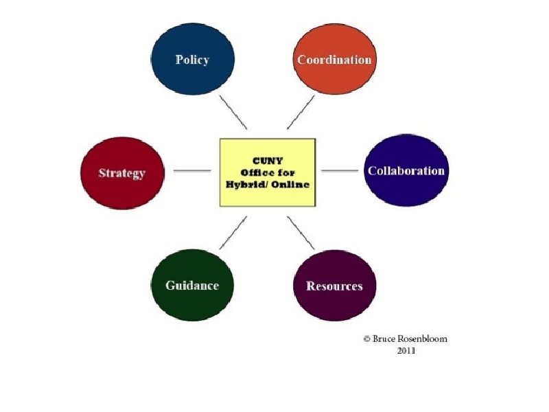Why Now? Why Topic and Focus? continued a. In strategic interest of colleges and the university to explore SP for hybrid/online b. Online learning is a a strategic asset and needs to be properly administered c. Potential: Equivalent to 2 -3 campuses in teaching/learning impact CUNY-wide d. Online has to potential to help transform teaching and learning at many institutions, including CUNY e. "Disruptive technology/ application" f. Can be an agent for change on campuses