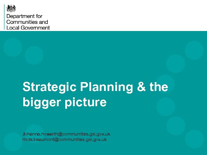 Strategic Planning & the bigger picture Johanna. howarth@communities. gsi. gov. uk mide. beaumont@communities. gsi. gov. uk