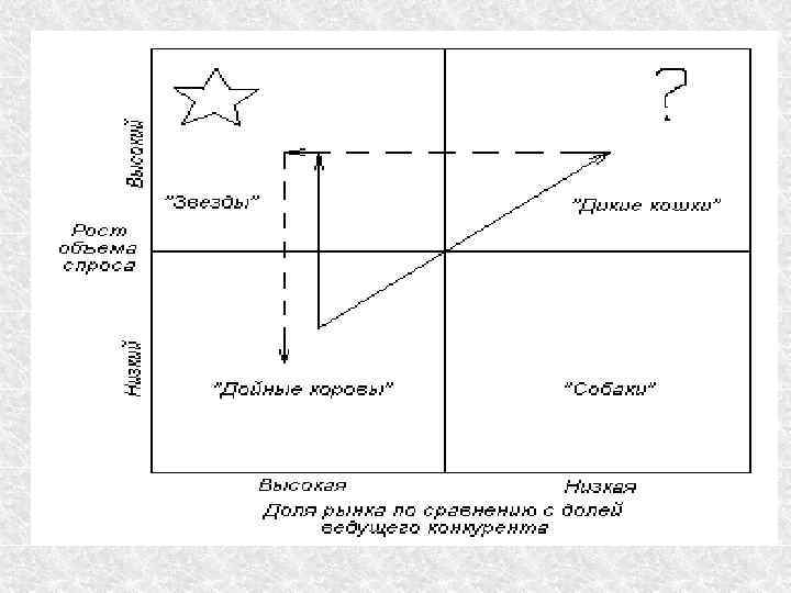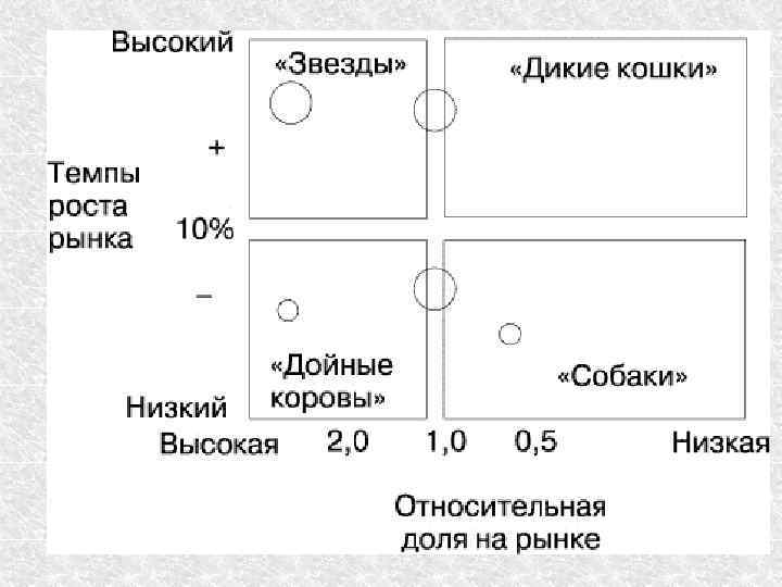В идеале сбалансированный номенклатурный портфель предприятия должен включать 2– 3 товара – "коровы", 1– 2 – "Звезды", несколько "проблем" в качестве задела на будущее и, возможно, небольшое число товаров – "собак".