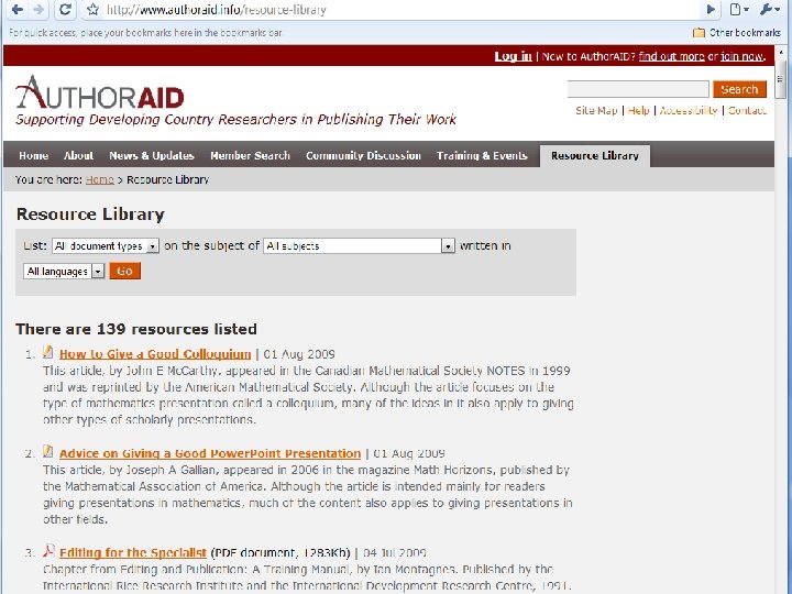 Four steps to untangle complex sentences • Find the action • If the action isn’t already in a verb, make it a verb • Find who/what did the action or (in a passive sentence) had it done to • Put that subject close to the verb Source: Editing and Publication: A Training Manual, by Ian Montagnes. Published by the International Rice Research Institute and the International Development Research Centre, 1991. (PDF document, 1313 Kb) http: //www. authoraid. info/resource-library (accessed 08/19/2009)
