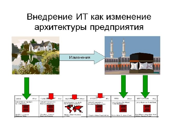 ИТ-архитектура = ИТ-аспекты общей архитектуры предприятия. Архитектуры предприятия (ANSI/IEEE Std 1471 -2000: «фундаментальная организация системы, реализованная в её компонентах, их взаимоотношениях друг с другом и средой и принципах, определяющих её конструкцию и развитие» . Архитектура предприятия – это концептуальное средство, которое помогает организации понять свою структуру и способы работы. Обычно архитектура предприятия имеет форму большого набора взаимосвязанных моделей, описывающих структуру и функции предприятия (Ранее термин использовался только в связи с ИТ)