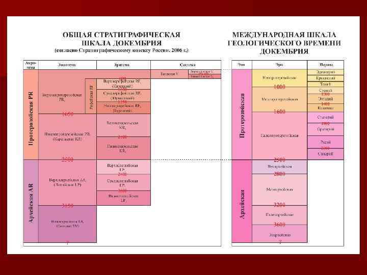 n Стратиграфическая шкала отражает последовательность отложений, расчленение их на отдельные стратиграфические единицы, выражает их временной объем и соподчиненность. n Геохронологическая шкала показывает длительность и последовательность основных этапов развития земной коры и Земли. n Стратиграфическая и геохронологическая классификации отражают один и тот же исторический процесс развития Земли.