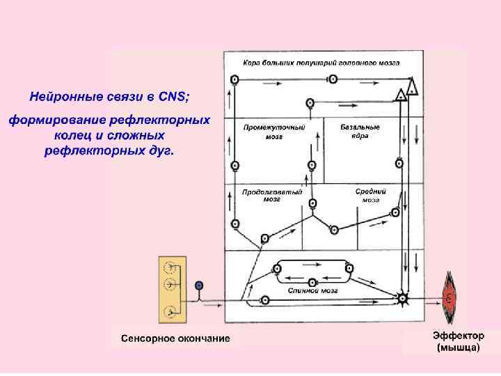 2) Сложная рефлекторная дуга имеет большее количество вставочных нейронов, которые передают информацию в центры головного мозга, где она анализируется и интегрируется. После происходит образование ответного импульса, который поступает к эффекторному нейрону.