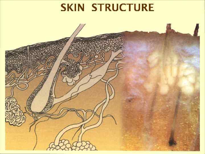 Функции кожного сала Водно-липидная эмульсия: 1. 2. 3. 4. 5. 6. 7. Придает эластичность коже и препятствует ее пересушиванию. Регулирует темпы десквамации и дифференцировку кератиноцитов. Способствует поддержанию постоянной температуры тела за счет изменений физического состава водно-липидной мантии. Нейтрализует щелочи, попадающие на поверхность кожи, органическими жирными кислотами и поддерживает постоянный слабо-кислый р. Н (4, 5 -5, 5). Подавляет размножение бактерий, грибов, вирусов благодаря свободным низшим жирным кислотам и некоторым другим веществам, входящим в состав кожного сала, пота и рогового слоя. Является одним из путей экскреции различных продуктов обмена, а также лекарственных и токсических веществ. Фотозащитная функция.