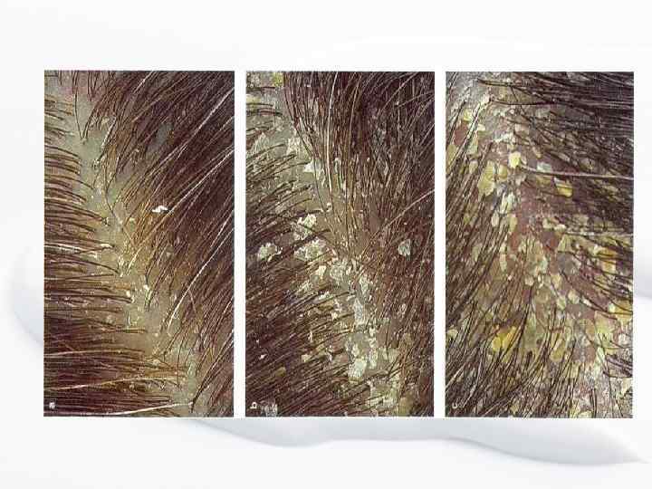Плотные квадратные чешуйки наблюдаются у детей. Чешуйки прилипают к волосам.