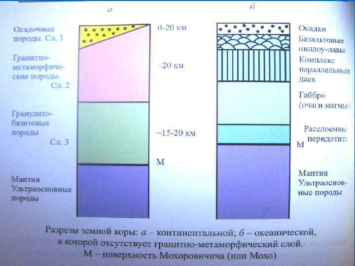 Строение земной коры Осадочный, «гранитный и базальтовый» слои