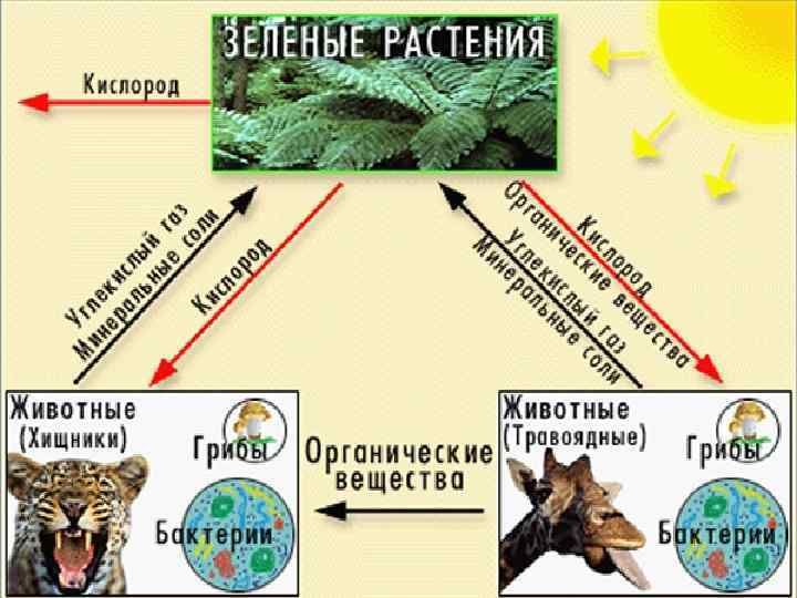 БИОСФЕРА u В ГО повсюду живут организмы, зеленые растения усваивают солнечную энергию, образуют органические вещества из неорганических.