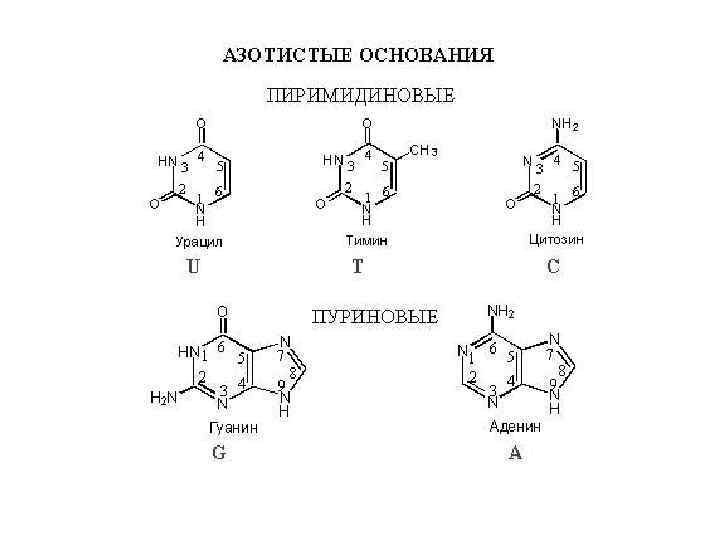 План 1. Пиримидиновые и пуриновые основания, 2. Нуклеозиды, нуклеотиды. 3. Строение нуклеиновых кислот: ДНК и РНК 4. Синтез и распад пуриновых и пиримидиновых оснований