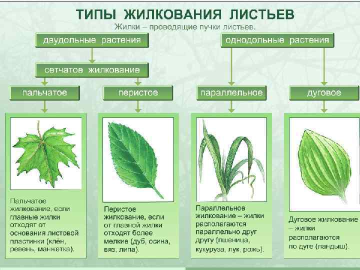 Жилкование Параллельное Дуговое Перистое Пальчатое