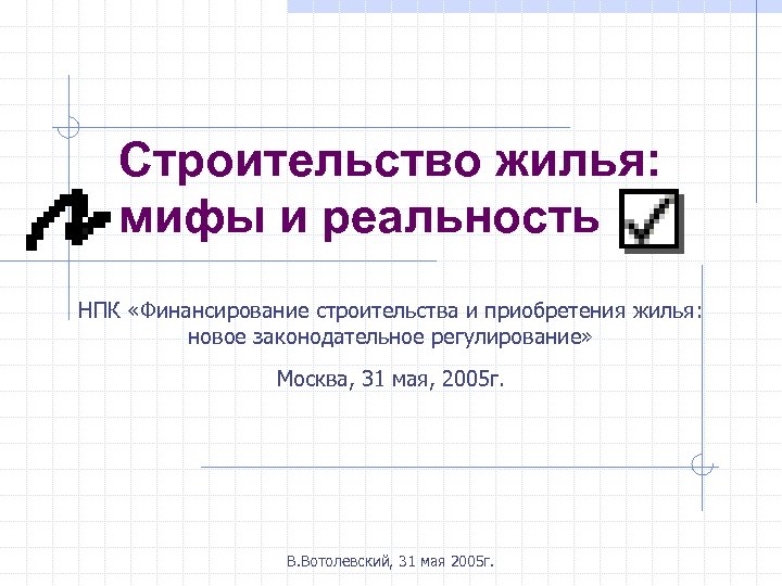 Строительство жилья: мифы и реальность НПК «Финансирование строительства и приобретения жилья: новое законодательное регулирование» Москва, 31 мая, 2005 г. В. Вотолевский, 31 мая 2005 г.