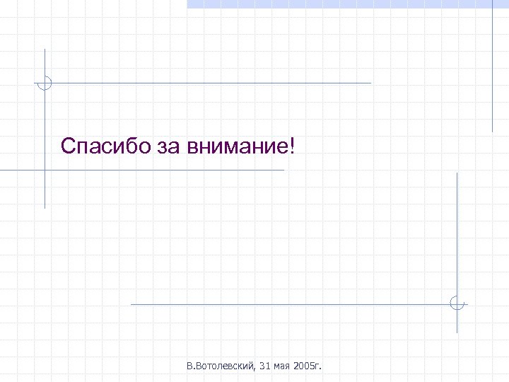 Спасибо за внимание! В. Вотолевский, 31 мая 2005 г.