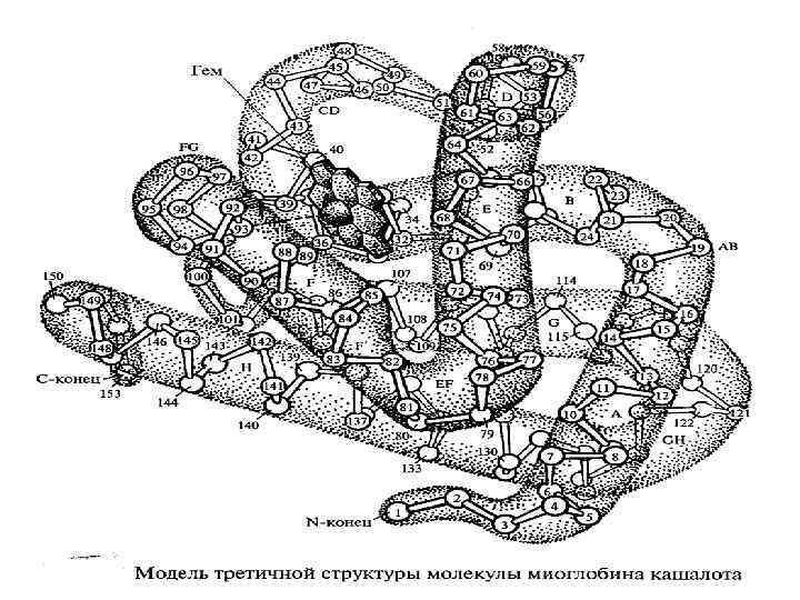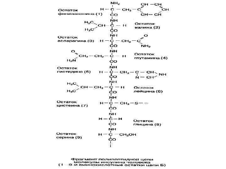 Первичные структуры некоторых белков, характерные для человека: Цитохром с из сердца человека (104 аминокислотных остатка): СН 3 СО — гли-асп-вал-глу-лиз-гли-лиз-иле-фен -ше-мет-лиз-цис-сер-глн-цис-гис-тре-вал-глулиз-гли-лиз-гис-лиз-тре-гли-про-асн-лей-гисгли-лей-фен-гли-арг-лиз-тре-гли-глн-ала-прогли-тир-сер-тир-тре-ала-асн-лизгли-иле-ше-три-глу-асп-тре-лей-мет-глугпир-лей-глу-асн-про-лиз-тир-иле-про-глитре-лиз-мет-иле-фен-вал-гли-иле-лиз-лизглу-арг-ала-асп-лей-иле-ала-тир-лей-лиз-лшала-тре-асн-глу.