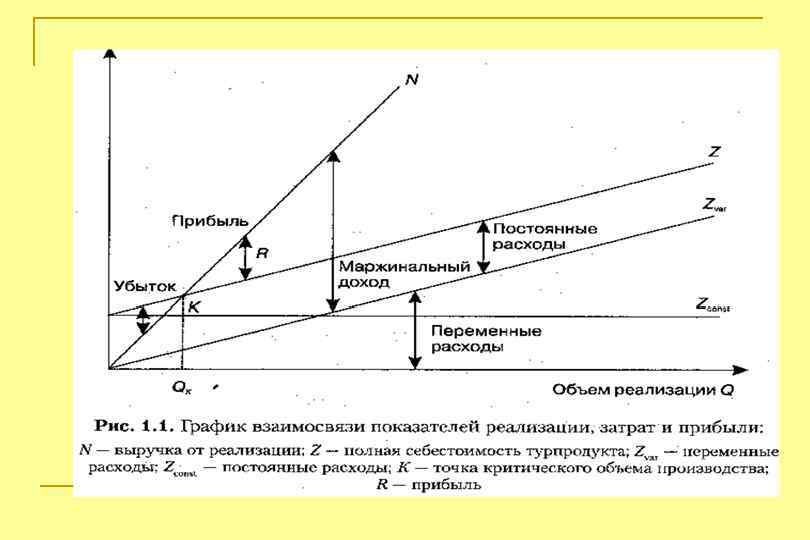 общая схема анализа точки безубыточности n n Уровень безубыточности турфирмы определяется минимальным объемом продаж, необходимым для покрытия всех затрат. Расчет этого объема осуществляется на основе трех показателей. Этими показателями являются: q q q рентабельность по маржинальной прибыли, постоянные затраты, объем продаж или выручка.