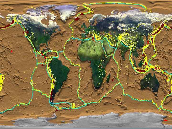 ЛИТОСФЕРА • • ТЕКТОНИКА ЛИТОСФЕРНЫХ ПЛИТ Литосфера разбита на плиты Плиты скользят по астеносфере Океаны меняются в размерах Столкновение плит – причина горообразования, землетрясений и вулканизма Зоны землетрясений и вулканизма А. Вегенер 1880 -1930