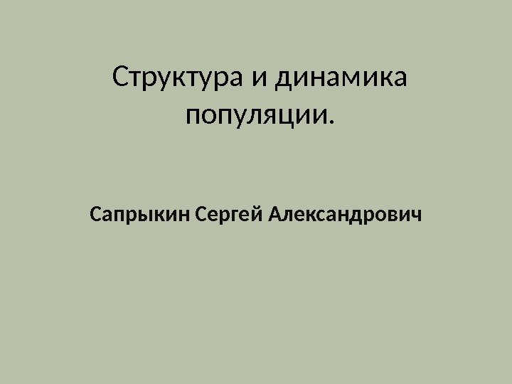 Описание презентации Структура и динамика популяции. Сапрыкин Сергей Александрович по слайдам
