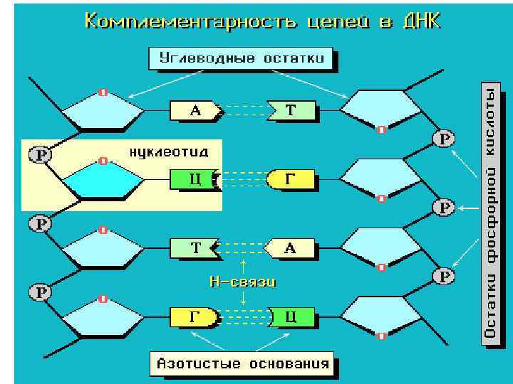 Образование водородных связей между комплементарными основаниями в молекуле ДНК