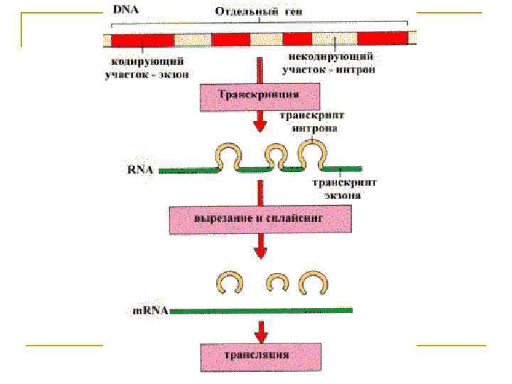 Этапы созревания про-м. РНК: Процессинг и Сплайсинг.
