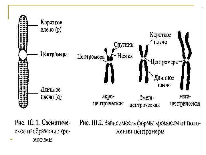 p q Организация метафазнои хромосомы: 1 - центромерна участок хромосомы; 2 - теломерна участок; 3 - дочерние хроматиди; 4 - гетерохроматин; 5 - еухроматин; 6 - короткое плечо; 7 - длинное плечо.
