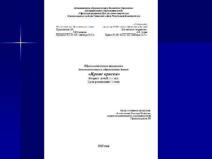 Структура образовательной программы дополнительного образования детей в условиях реализации ФГОС Ахмадалиева Эльвира Марсовна 8 (347)270 16 23 педагог дополнительного образования МОБУ ДОД «Уфимский районный ДДТ» Уфимский район, с. Михайловка 2016 г.