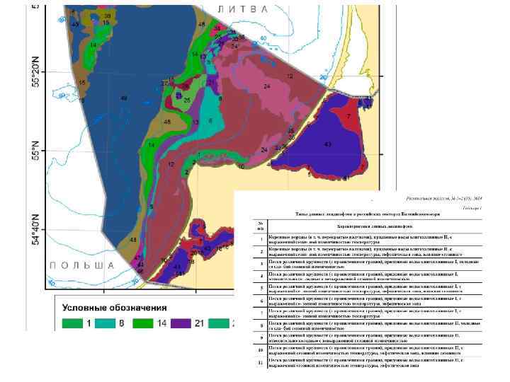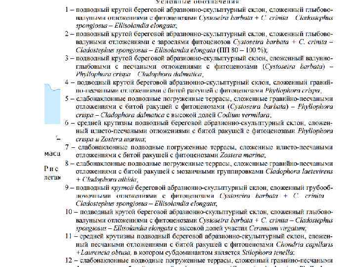 3) подводная освещенность, прибойность и течения, осаждение частиц на дно и т. п. перераспределяются элементами рельефа, поэтому подводный ландшафт, обладая одинаковым гидроклиматом, дифференцируется на целый ряд местных и микрогидроклиматических обстановок; 4) разнообразие форм рельефа, грунтов, гидроклиматических обстановок определяют пестроту условий местообитания и соответственно разнообразие донных биоценозов. Все это служит основанием для выделения системы морфологических единиц внутриландшафтной дифференциации и применения ландшафтно-экологического метода исследования структуры бентоса.