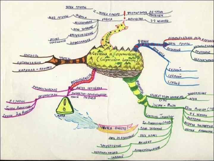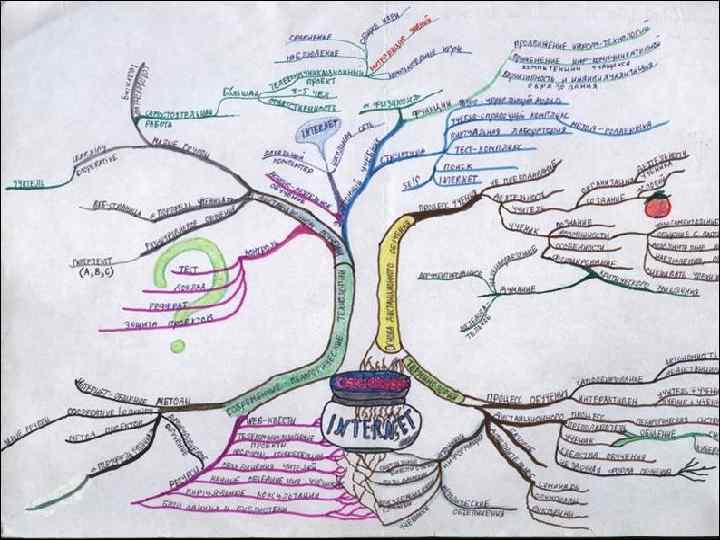 Как составить умственную карту? 3. Повсюду используйте разные цвета. Зачем? Затем, что цвет стимулирует творческое мышление, помогает вам различать сферы творческой мысли, стимулирует визуальные центры мозга и захватывает внимание глаз, привлекает интерес. 4. Подсоедините к центральному образу главные ответвления и соедините ветви второго и третьего уровней с первым и вторым уровнями.