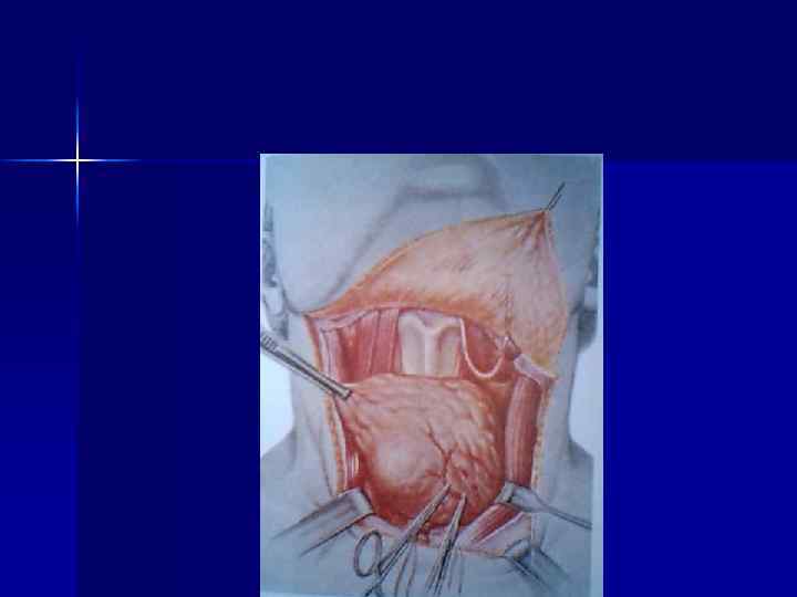ХИРУРГИЧЕСКОЕ ЛЕЧЕНИЕ ДТЗ ОПЕРАЦИЯ – субтотальная субфасциальная резекция щитовидной железы по О. В. Николаеву n Операция предусматривает оставление на задней поверхности щитовидной железы участков ткани общим весом 4 -6 г. n