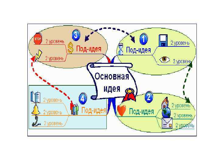 Правила построения ментальных карт • Все ветви подписываются печатными буквами. Для их обозначения применяются ключевые слова. • Шрифт, цвет, размер и начертание надписей должны быть как можно разнообразнее. • В оформлении используются иллюстрации и условные обозначения. Чтобы показать связь между элементами карты, применяются разнообразные по форме, цвету и начертанию стрелки. • Если свежие идеи не приходят—на карте изображают пустые ветви, тем самым, стимулируя мозг завершить картину.