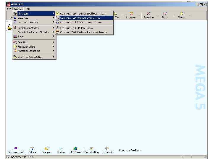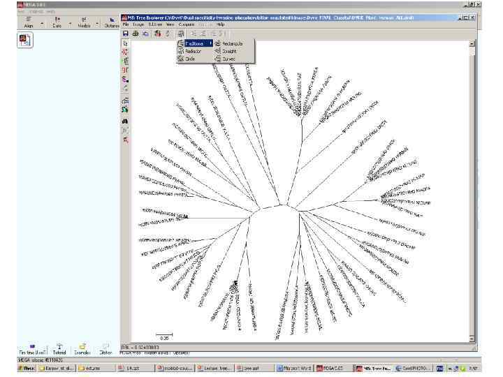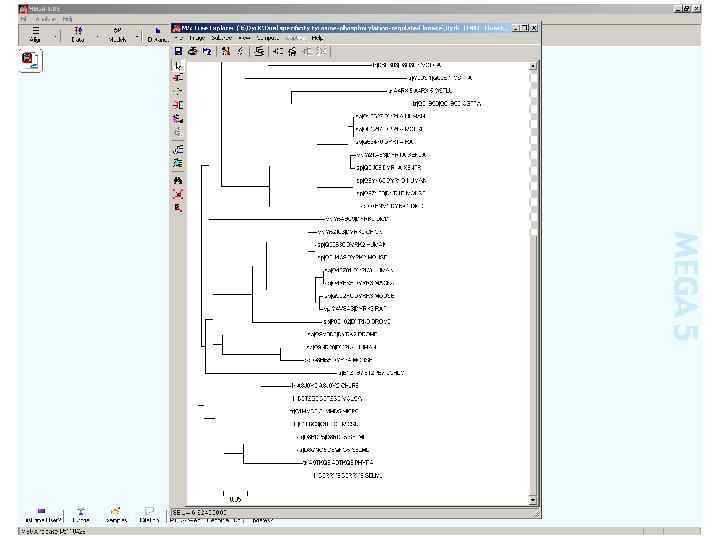 Рутинная процедура Составление выборки последовательностей Множественное выравнивание Построение дерева фрагмент записи в виде правильной скобочной структуры: (((((con 101: 38. 51018, (f 53969: 28. 26973, ((f 67220: 8. 39851, max 4: 27. 50591): 4. 92893, con 92: 30. 19677): 13. 62315): 9. 53075): 25. 83145, Визуализация и анализ дерева