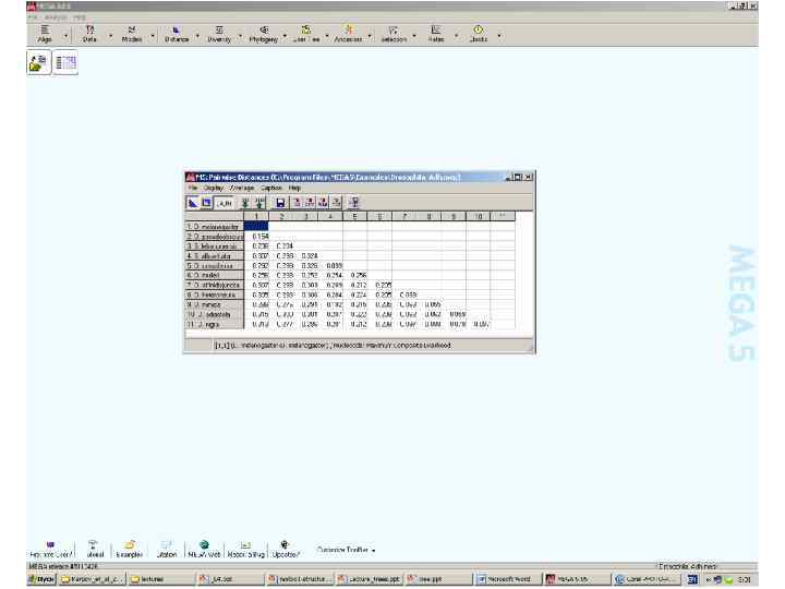 Методы, основанные на оценке расстояний • • Дано: М – матрица n x n, где Mij>=0 , Mij – эволюционное расстояние между листьями (OUT - Operational Units of Taxonomy). Задача: Построить реберно взвешенное (an edge-weighted) дерево, где каждая вершина (лист) соответствует объекту из M , а расстояние, измеренное по дереву между вершинами (листьями) i and j соответствует Mij.