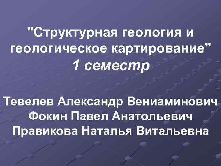 "Структурная геология и геологическое картирование" 1 семестр Тевелев Александр Вениаминович Фокин Павел Анатольевич Правикова Наталья Витальевна