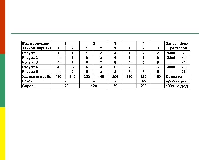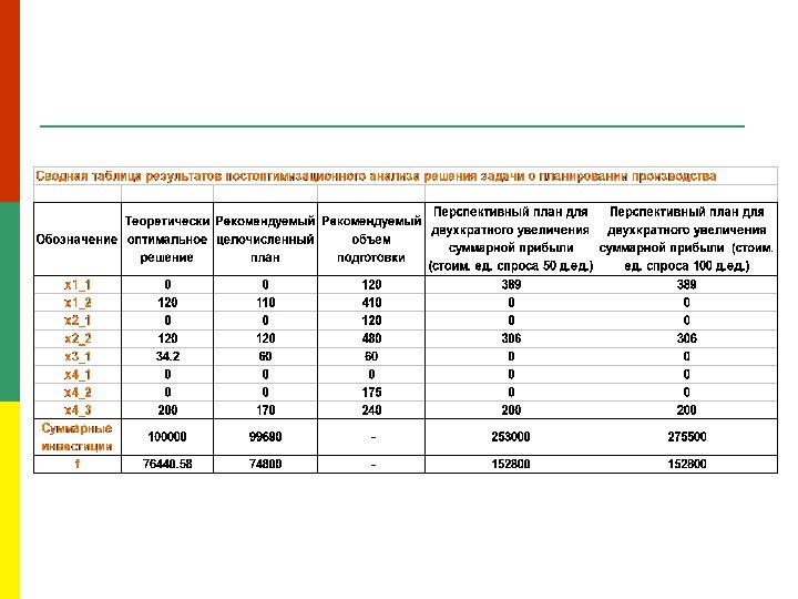 Для минимизации потерь при неблагоприятных структурных изменениях производственной ситуации предприятие должно заблаговременно провести подготовку выпуска продукции: 1 -го вида по 1 -му технологическому варианту в объеме 120 ед. 2 -го вида по 1 -му технологическому варианту в объеме 120 ед. 4 -го вида по 2 -му технологическому варианту в объеме 120 ед. предусмотреть возможность увеличения выпуска продукции: 3 -го вида по 1 -му технологическому варианту до 60 ед. Для эффективного использования благоприятной ситуации при возрастании спроса на продукцию 1 -го и 2 -го вида необходимо предусмотреть возможность увеличения в 3 – 4 раза выпуска этих видов продукции.