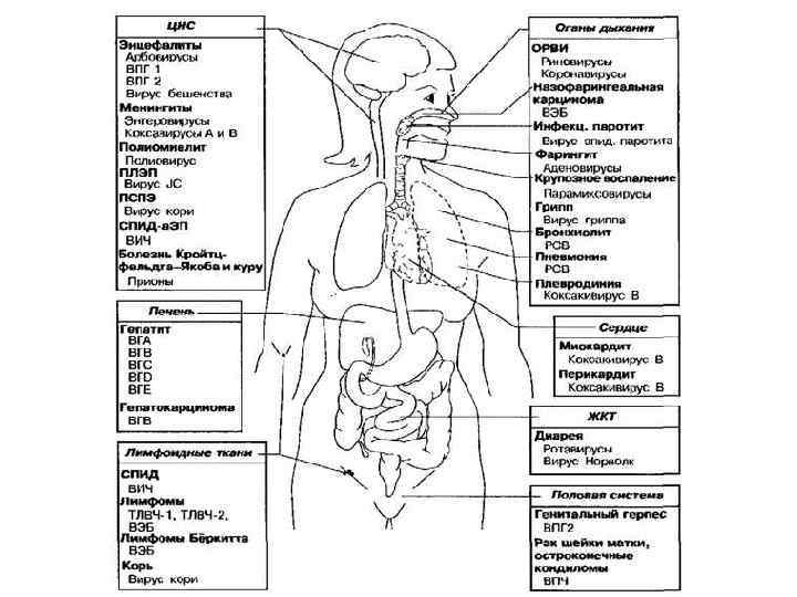 Вирусы как возбудители болезней Цитодеструкция клеток Причины болезней, возникающих в результате взаимодействия вирусов с организмом Трансформация клеток Иммунологическая реакция организма на зараженную ткань Нек. вирусные заболевания человека: Грипп ОРЗ Оспа Корь Краснуха Эндемический паротит Полиомиелит Желтая лихорадка ВИЧ Вирусные гепатиты