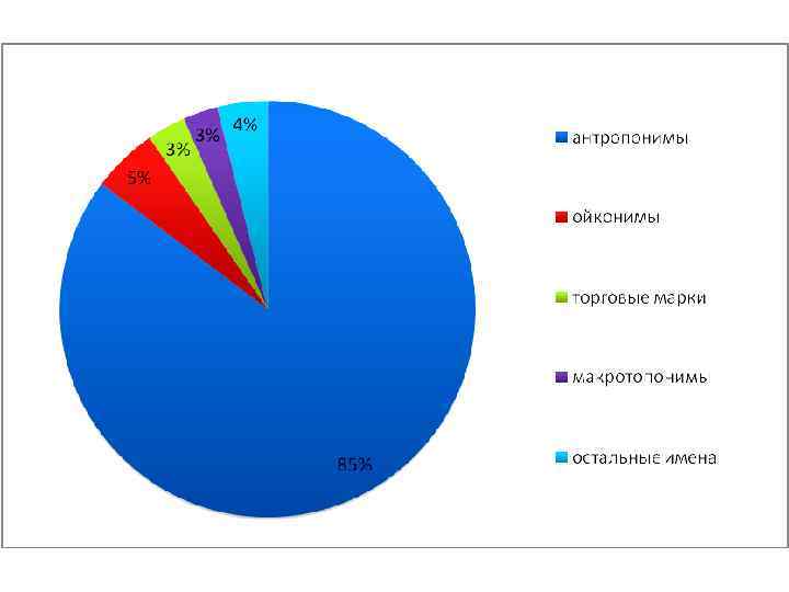 1% 1% 4% 5% анторопонимы топонимы 24% национальности теонимы марки машин 65% остальные имена