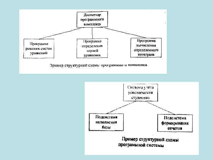 Разработка структурной и функциональной схем Процесс проектирования сложного ПО начинают с уточнения его структуры - определения структурных компонентов и связей между ними. Результат уточнения структуры может быть представлен в виде структурной и/или функциональной схем и описания (спецификаций) компонентов. Структурная схема разрабатываемого ПО Структурная схема отражает состав и взаимодействие по управлению частей ПО. Самый простой вид ПО - программа, в качестве структурных компонентов может включать только п/п и библиотеки ресурсов. Разработку структурной схемы программы выполняют методом пошаговой детализации. Структурными компонентами программной системы или программного комплекса могут служить программы, подсистемы, БД, библиотеки ресурсов и т. п.