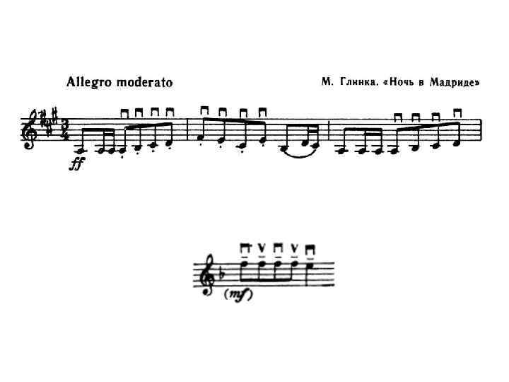Staccato (стаккато) – несколько отрывистых нот на один смычок (редко употребляется в оркестровой игре)