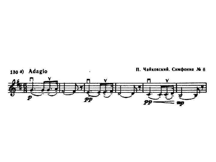 Способы ведения смычка П - движение смычка «вниз» V - движение смычка «вверх»