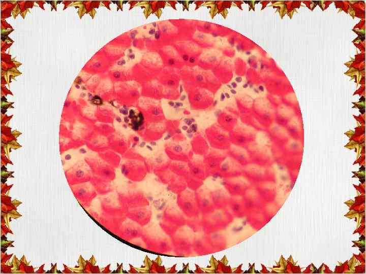 Ответ: • Включения гликогена в печени аксолотля • Окраска Кармином по способу Беста