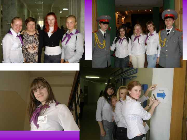 Форма отряда Форма придает определенный стиль отряду: белая блузка, юбка средней длины или классические брюки, бейджик, фиолетовый галстук, который является отличительным элементом отряда. Данный цвет присущ только нашему сервисному отряду.