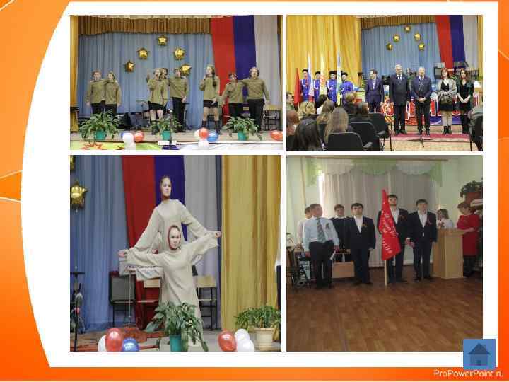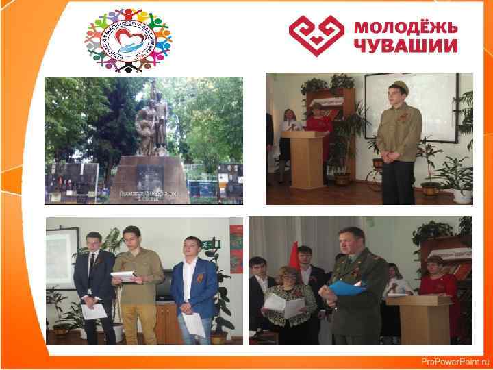 Деятельность военно-патриотического объединения «ОРЛЁНОК» Посещение ветеранов на дому и организация помощи им Акция "Сирень Победы" Экологическая акция «Память поколений» Республиканские финальные игры юнармейского движения «Зарница» , «Орленок» в ЧР в 2016 г Участие в городских лично-командных соревнований среди учебных заведений города Новочебоксарска Всероссийская акция «Вахта памяти» Участие в городском смотр-конкурс строя и песни юнармейских отделений «Морское троеборье» Военно-спортивный праздник «А, ну-ка, парни!