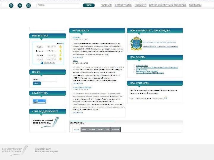 Конкурс индивидуальных грантов «ПРЕПОДАВАТЕЛЬ ОН-ЛАЙН» • Для грантополучателей Конкурса создана специальная платформа, где человек не обладающий специальными познаниями в области создания сайтов или программирования может создать свой индивидуальный образовательный ресурс. • http: //www. professorjournal. ru