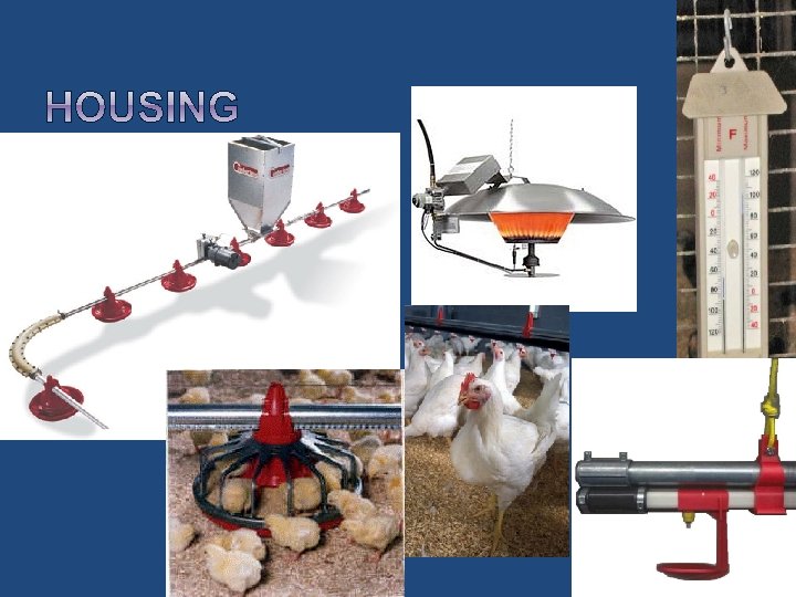 Requirements: Feeding Heaters Litter system Thermometers Alarm systems Humidity Standby Watering system equipment