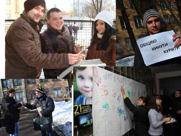 Здоров'я молоді - здоров'я нації Флешмоб на 1 грудня до Дня толерантності з ВІЛінфікованими • Акції “Молодь проти СНІДу”, “Молодь проти наркотиків”, “Молодь проти паління”; • Організовуються різноманітні флешмоби, тренінги, зустрічі зі спеціалістами та лікарями.