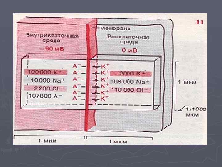 Membrane potential is a potential difference between a surface of a cellular membrane and its protoplasm at the expense of uneven distribution of concentration of ions on an external and internal surface of a membrane (outside more ions of sodium at 5 -15 time, in a cage is more than tones of potassium in 20100 time). The cellular membrane selectively permeable for ions – permeable for potassium also is low permeable for sodium. Outside the membrane is loaded – "+"; Inside the membrane is loaded – "-". Size of membrane potential for muscular fibers (– 60) - (– 90) m. V.
