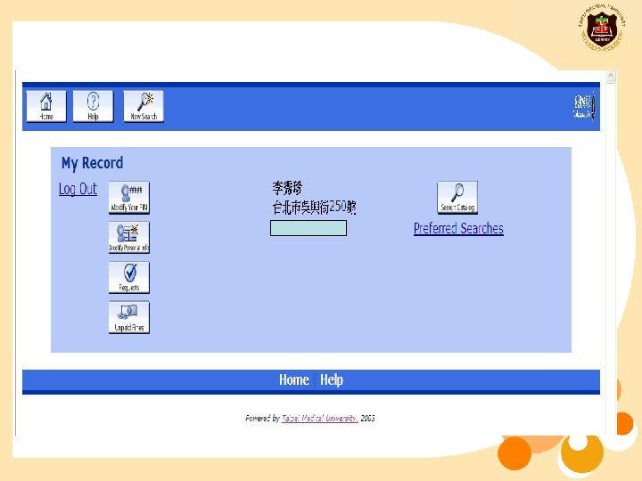 How to view your personal record? http: //elis. tmu. edu. tw: 2082/patroninfo*cht