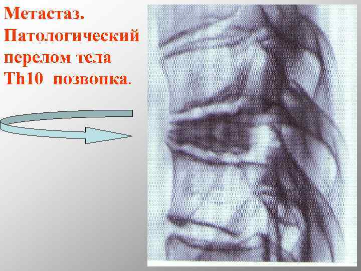Метастаз. Патологический перелом тела Th 10 позвонка.