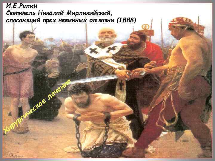 И. Е. Репин Святитель Николай Мирликийский, спасающий трех невинных от казни (1888) ие н Хи ур р ич г ое ск е л че е