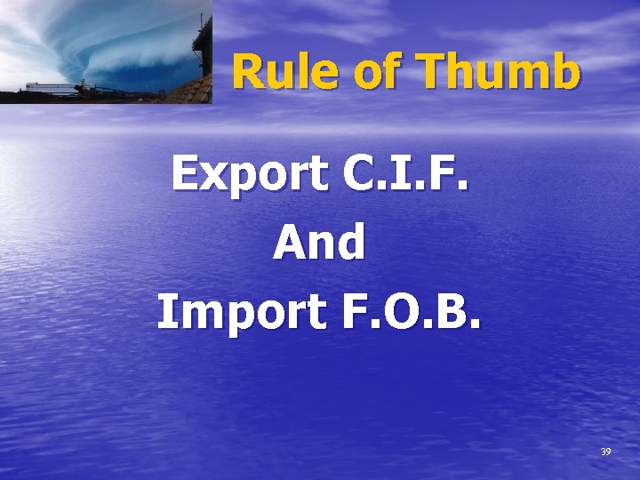 Rule of Thumb Export C. I. F. And Import F. O. B. 39