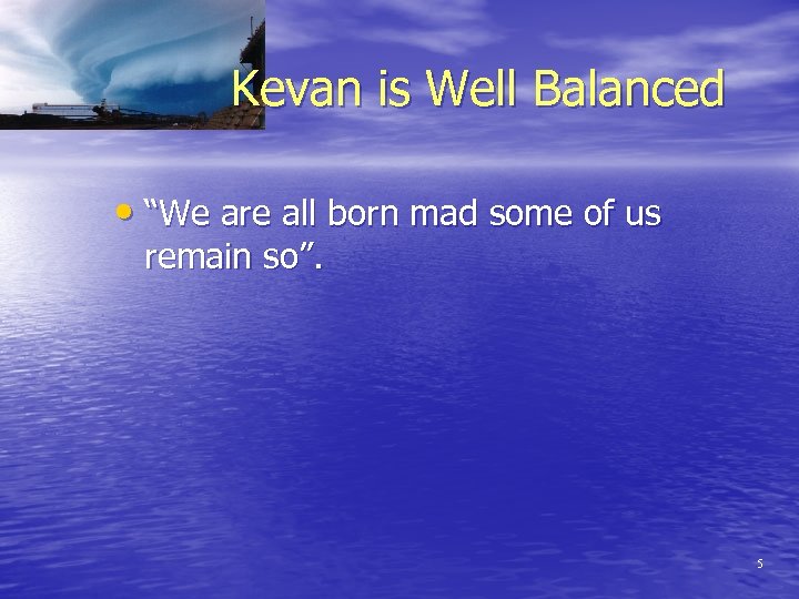 Kevan is Well Balanced • “We are all born mad some of us remain so”. 5